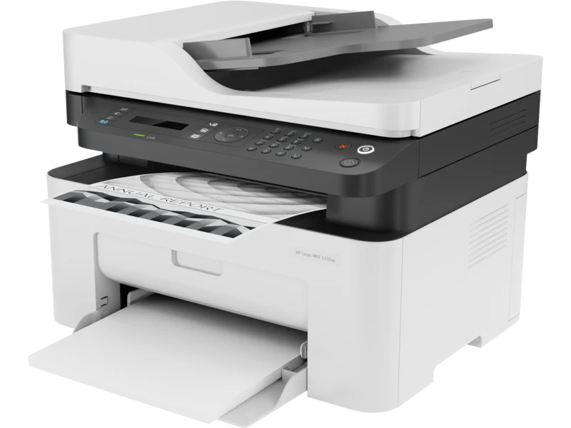 HP Laser MFP 137fnw All-in-One Printer – Print, Scan, Copy, Fax, 21 ppm, 1200×1200 dpi, 40-Sheet ADF, Wi-Fi, Ethernet, Mobile Printing (Black & White)